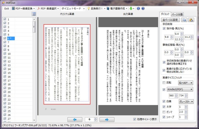 - 詳しい使い方は、PDFDiet で、 MOBI形式のファイルを作成する をご覧ください。